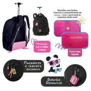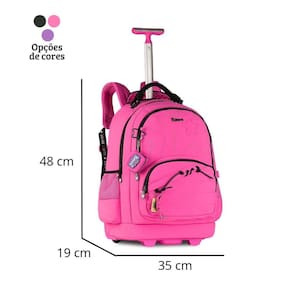 A mochila de carrinho Luluca LU27029 é puro estilo, praticidade e inovação para a rotina escolar. Disponível em três cores incríveis - Preto, Rosa e Lilás - ela é confeccionada em poliéster de alta qualidade com matelassê colorido em formato de estrelas, trazendo muito brilho e personalidade. Seu design conta com placa de metal com resina, metais pretos/ônix e strap acetinado personalizado, além de chaveiros que são um show à parte: um removível com porta fone e mosquetão de estrela, e outro fixo com detalhes em PVC e placa em acrílico com QR code. O espaço interno é perfeito para acompanhar o dia a dia: compartimento principal superespaçoso, divisória acolchoada para notebook, outro espaço para tablet e mais dois bolsos frontais com zíper, sendo um deles com divisórias internas para manter tudo organizado. Nas laterais, bolsos ideais para garrafinhas. O grande diferencial está na versatilidade: pode ser Utilizado como carrinho, com rodinhas resistentes, puxador de metal com duas alturas e trava, além da base frontal de apoio. Ou pode ser Utilizado nas costas, graças às alças acolchoadas guardadas em compartimento fechado por zíper. Basta puxá-las e usar o protetor de rodinhas para evitar que suje a roupa. Ainda conta com alça de mão superior em corda, um detalhe moderno e exclusivo. Todos os puxadores de zíper são personalizados, reforçando o acabamento premium da linha. Dimensões aproximadas: 48x35x19cm