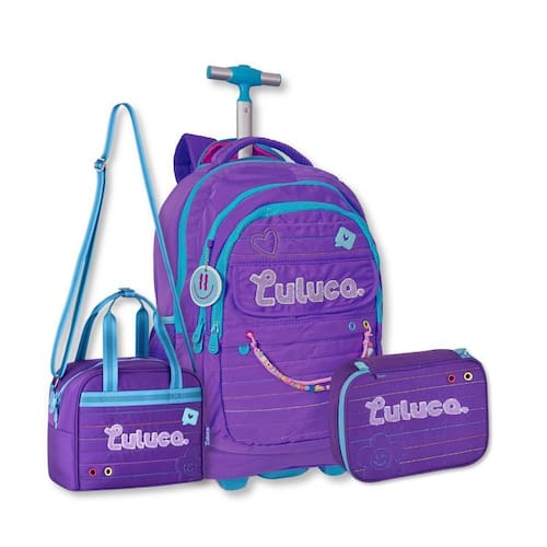 Se você busca estilo, praticidade e economia em um único kit, o Kit Escolar Completo Luluca é a escolha perfeita para começar o ano letivo com tudo Ideal para meninas modernas e organizadas, esse kit premium combina design encantador, funcionalidade e qualidade superior em cada detalhe. A Mochila de Carrinho LU24606 é um verdadeiro destaque: espaçosa, versátil e repleta de recursos que tornam a rotina mais prática e organizada. Com duas opções de uso carrinho ou costas , ela conta com alças ajustáveis, proteção para as rodinhas e compartimentos amplos, incluindo divisória acolchoada para notebook. Além disso, os detalhes em matelassê colorido, patches atoalhados e chaveiro de miçangas trazem um toque exclusivo ao visual. A Lancheira Térmica LU24608 mantém os lanches fresquinhos e organizados com muito estilo. Seu revestimento térmico, alça carona e alça de ombro ajustável garantem praticidade no transporte e combinam perfeitamente com a mochila. Já o Estojo Box LU24607 é compacto e funcional, ideal para manter todos os materiais bem organizados. Com espaço para até 36 lápis, divisórias internas e fechamento por zíper, ele complementa o kit com charme e praticidade. Adquirir o kit completo é muito mais vantajoso do que comprar os itens separadamente. Além de economizar, você garante um conjunto que combina perfeitamente entre si e destaca o estilo único da sua menina. Não deixe essa oportunidade passar - transforme a volta às aulas em um momento ainda mais especial