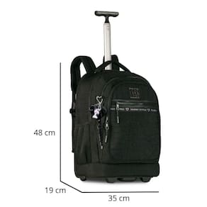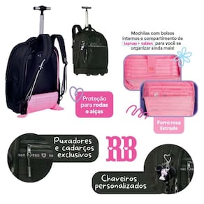 A Mochila de Carrinho Rebecca Bonbon RB27000 é o modelo perfeito para quem ama estilo e praticidade no mesmo produto. Feita em nylon resistente com matelassê de estrelinhas e corações, ela tem aquele visual moderno e super fashion. O compartimento principal é bem espaçoso e ainda vem com divisórias acolchoadas para notebook e tablet. Na frente, são quatro bolsos com zíper, sendo um deles organizador interno, além de bolsos laterais em tela para garrafinha ou acessórios. E não para por aí: a mochila vem com chaveiro pompom em formato de coração, mascote 3D, cadarço decorativo, medalhinha de metal e até uma cartela exclusiva de adesivos Rebecca Bonbon para deixar tudo ainda mais estiloso. O melhor é que você pode escolher como usar: no carrinho, com rodinhas super resistentes e puxador de metal com duas alturas, ou nas costas, com alças acolchoadas bem confortáveis e com proteção para as rodinhas não sujarem a roupa . Também tem alça de mão superior e zíperes personalizados, que são um charme à parte. Disponível em quatro cores lindas - Preto, Rosa, Lilás e Verde. Dimensões aproximadas: 48x35x19cm Marca: Não Informado Ean: 7795028409203