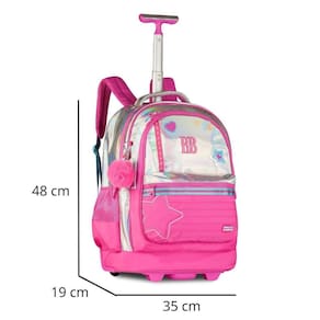 Um modelo exclusivo e cheio de estilo, a mochila de carrinho Rebecca Bonbon RB27016 é confeccionada em PVC holográfico com bordado de estrela, patches no painel frontal, etiqueta emborrachada e cadarços estampados, trazendo um design moderno e único. O compartimento principal é muito espaçoso e conta com divisória acolchoada para notebook e outra para tablet. Além disso, possui dois compartimentos frontais com fechamento por zíper, sendo um deles com divisórias internas, além de bolsos laterais telados duplos. Acompanha chaveiro triplo, incluindo um pompom com orelhinhas super charmoso, além de cartela de adesivos exclusivos da Rebecca Bonbon. Pode ser Utilizado como mochila de carrinho, com rodinhas resistentes, puxador de metal com duas alturas e trava, além de base de apoio frontal. Ou, se preferir, pode ser Utilizado nas costas, já que possui alças acolchoadas ajustáveis que ficam guardadas em compartimento traseiro fechado por zíper, junto com protetor de rodinhas para evitar sujeiras nas roupas. Conta ainda com alça de mão superior. Todos os puxadores de zíper são personalizados. Dimensões aproximadas: 48x35x19cm. Marca: Não Informado Ean: 7795028479565