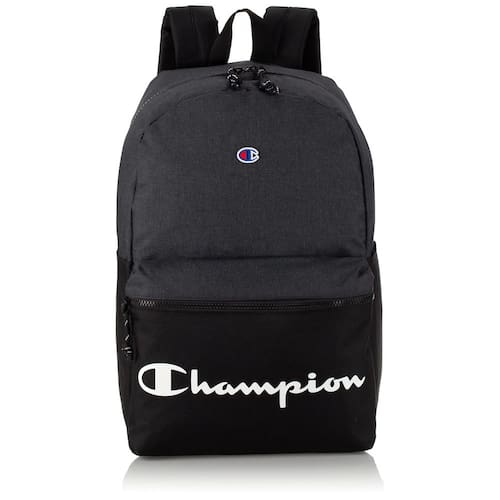 Mochila Champion Manuscript, preta, tamanho único — Bolso frontal com zíper — Organizador interno — Bolso lateral para garrafa de água — Manga deslizante para laptop — Alça e parte traseira acolchoadas — Logotipo bordado