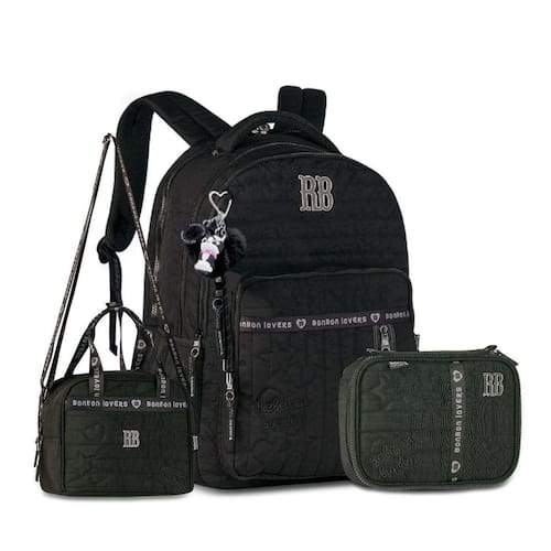 Esse Kit Rebecca Bonbon é o sonho de toda volta às aulas com muito estilo Mochila RB27005: confeccionada em nylon com matelassê de estrelas e corações, traz compartimento principal amplo, divisórias internas, bolso antifurto traseiro, espaço acolchoado para notebook e tablet, bolsos telados laterais e bordado exclusivo no costado. Acompanha chaveiro pompom, mascote 3D, medalhinha de metal, cadarço personalizado e cartela de adesivos. Lancheira RB27003: confeccionada em nylon no mesmo estilo matelassê da mochila, com revestimento térmico para conservar os alimentos, alça de mão, alça de ombro ajustável e alça carona para acoplar em mochilas de rodinhas. Os puxadores também são personalizados, reforçando o charme da linha. Dimensões: 20x24x14cm. Estojo Box RB27004: espaçoso e funcional, com capacidade para até 100 canetas. Possui 36 elásticos para organizar lápis e canetas, além de um estojo interno separado com fechamento em zíper. Confeccionado em nylon com matelassê elegante. Dimensões: 22x16x6cm. Esse kit traz a combinação perfeita de beleza e funcionalidade, ideal para quem ama a Rebecca Bonbon e quer brilhar na escola. Marca: Não Informado