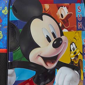 A mala com rodas do Mickey é feita de poliéster resistente, com frente em PVC vincado e puxador do zíper de metal personalizado. Possui um compartimento amplo, hastes com trava e rodinhas em gel. As cores de sua composição combinam perfeitamente com o as aventuras de Mickey e seus amigos.Detalhes EspeciaisPuxadores Personalizados: Em Metal pintado, os puxadores de zíper são personalizados com um design exclusivo, oferecendo um toque único à mochila.Bolsos Laterais: Perfeitos para armazenar garrafas de água, guarda-chuvas ou pequenos itens de acesso rápido.Técnica frontal: PVC vincado.Alça de mão: tira de poliéster forrado com nylon.Carrinho: O carrinho promove mais conforto e praticidade para o dia a dia dos pais e crianças. Feito de Metal pintado e hastes arredondadas, possui travas de altura, 2 rodas em gel e freio frontal.Material:Poliéster 420DDIMENSÕES:- Largura: 30cm- Altura: 40cm- Comprimento: 15cmPESO: 800gr