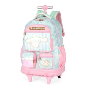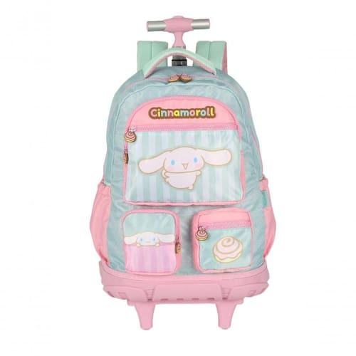 A Mochila de Rodinhas My Melody MC49694SR faz parte da coleção oficial My Melody, amiguinhos da Hello Kitty, e foi desenvolvida para unir praticidade, conforto e estilo em qualquer ocasião. Confeccionada em náilon resistente, possui dimensões de 46 x 34 x 22 cm, capacidade aproximada de 28 litros, sendo classificada como mochila média e compatível com 18 polegadas, ideal para uso escolar ou no dia a dia.