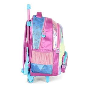 O modelo IC42412SC mochila de rodinhas holográfica possui dimensões de 43 x 32 x 15 cm, capacidade aproximada de 20 litros, sendo classificada como mochila média e compatível com 17 polegadas. Confeccionada em náilon acetinado, destaca-se pelo design holográfico com brilhos, detalhes em pelúcia e estampa em alto-relevo do Stitch.