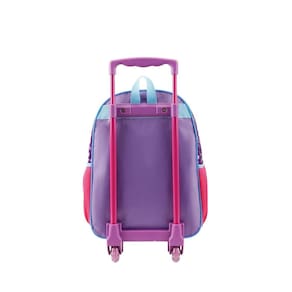 Linha Minnie de Minnie Mouse. Sua mala com rodinhas no tamanho 16 possui um compartimento espaçoso para armazenar todos os objetos que precisam ser transportados para a escola. Além disso, seu carrinho em metal possui haste com ajuste de altura e rodinhas de silicone. Painel frontal em PVC com a estampa da personagem e bolso extra. Dimensões: Largura: 27 cm Altura: 35 cm Comprimento: 14 cm Peso: 700 gr Marca: Não Informado