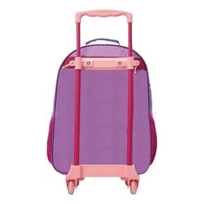 Características / Composição: - Material: Poliéster 420D resistente. - Carrinho: Estrutura de metal pintado com hastes arredondadas, travas de altura e 2 rodas com glitter e freio frontal. - Puxadores Personalizados: Zíperes exclusivos em metal pintado. - Alças: Alça de mão acolchoada em poliéster com revestimento em nylon para maior conforto. - Dimensões: - Largura: 27 cm - Altura: 35 cm - Comprimento: 14 cm