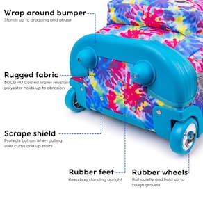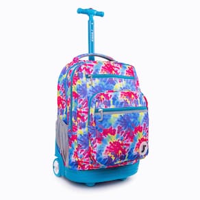 A inovadora e versátil mochila com rodinhas J World Sundance para escolas e viagens possui um compartimento para laptop de 15,6" e um molde de proteção inferior para garantir que seu dispositivo não seja danificado durante a viagem. A mochila para laptop com rodas Sundance pode ser utilizada como bagagem de mão ou como mochila para laptop com tiras que é fácil de transportar. Organize todos os seus pertences com um bolso frontal equipado com porta-lápis, chaveiro e bolso de malha, perfeito para guardar itens que podem ser facilmente acessados. Para quem precisa de hidratação em trânsito, tem bolsos laterais de malha que são ideais para guardar garrafas de água e vários outros recipientes para bebidas. Com enorme capacidade, esta mochila para laptop carrega facilmente um laptop, fichário de 3 polegadas, 3 livros didáticos universitários, cadernos, disco rígido portátil e almoço com espaço de sobra. A alça de alumínio de tubo único se estende até 34 ou 39 polegadas para facilitar a manobrabilidade de crianças e adultos de até 6 pés e 3 polegadas de altura.