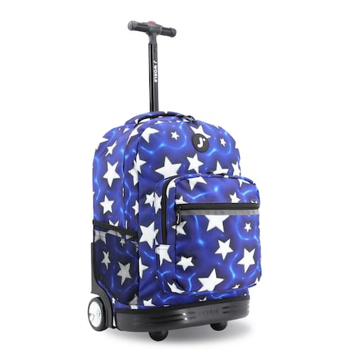 Viaje, volte para a escola ou durma na casa do pijama com estilo, com seus pertences bem guardados na mochila rolante J World Sunrise. A versatilidade da mochila com rodas Sunrise permite que ela funcione tanto como bagagem de mão rolante quanto como mochila com tiras para estudantes. Possui alça telescópica de alumínio leve, rodas macias e silenciosas e molde de proteção inferior para maior durabilidade. Organize todos os seus pertences com um bolso frontal equipado com porta-lápis, chaveiro e bolso de malha, perfeito para guardar itens que podem ser facilmente acessados. Para quem precisa de hidratação em trânsito, tem bolsos laterais de malha que são ideais para guardar garrafas de água e vários outros recipientes para bebidas.