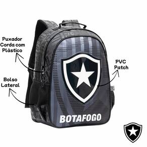 Características: - Confeccionada em Poliéster - Dois bolsos laterais em mesh - Escudo oficial do Botafogo - Frente Sublimada + PVC Patch - Compartimento principal espaçoso - Alças de mão de tira forrada - Alças de costas acolchoadas e ajustáveis - Puxador corda com plástico - Forro Interno Personalizado