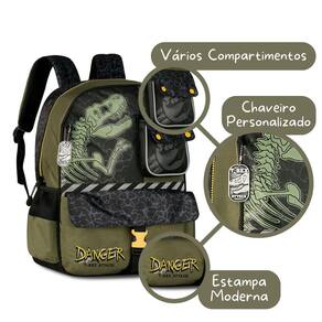 O Kit Escolar Infantil Dinossauro com Mochila de Costas com Lancheira Térmica é a escolha perfeita para acompanhar os meninos durante a rotina escolar com conforto, organização e muito estilo. A Mochila de Costas TX25027J é confeccionada em poliéster de alta qualidade com detalhes em ripstop e possui estampa moderna de dinossauro em tons de verde. Seu compartimento principal é espaçoso e com fechamento em zíper, ideal para cadernos e livros. Conta ainda com dois bolsos frontais para manter os acessórios organizados e bolsos telados laterais para garrafinhas. Suas alças de costas são ajustáveis e acolchoadas, garantindo conforto no transporte, e a alça de mão superior traz mais praticidade no dia a dia. Acompanha chaveiro personalizado. Dimensões aproximadas: 40x30x13cm. A Lancheira Térmica TX25028L mantém os alimentos bem conservados graças ao revestimento térmico interno. Produzida em poliéster com frente em telado duplo e etiqueta de borracha, possui fechamento em zíper, alça de costas regulável, alça de mão superior e alça carona que permite acoplar diretamente na mochila de rodinhas ou malas. Dimensões aproximadas: 23x20x11cm. Esse kit é ideal para quem prefere mochila de costas, oferecendo praticidade, resistência e estilo em um só conjunto. Com estampa exclusiva e acabamento de qualidade, é perfeito para pais que procuram produtos duráveis e funcionais para a volta às aulas. Marca: Não Informado Ean: 7795028489083