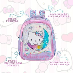 Mochila Costas Hello Kitty Infantil Meninas Estrela Escolar - Xeryus A Mochila Hello Kitty Infantil Estrela foi desenvolvida para meninas que querem unir estilo, organização e conforto na volta às aulas. Com design exclusivo da Hello Kitty e detalhes de estrelas que são tendência, essa mochila se destaca por ser fofa, moderna e altamente funcional. Seu espaço interno amplo acomoda facilmente todos os materiais escolares, enquanto o bolso frontal e os bolsos laterais oferecem praticidade no dia a dia. Características Mochila: - Alça de mão - Alça de Costas estampadas - Bolsos Laterais para Garrafas - Bolso Frontal - Patch em PVC com confeti - Zíper multi colorido - Zíper com Puxadores Personalizados Especificações : - Marca: Xeryus - Material: Poliéster - Medidas Aprox. Mochila AxLxP : 40cm x 30cm x 15cm - Capacidade Aprox. Mochila Litros : 18 litros - Tema: Hello Kitty Estrela - Cor: Lilás Conteúdo da Embalagem: 15392 - 1 Mochila Costas Hello Kitty Infantil As cores podem variar entre as imagens mostradas acima e o produto. Imagens meramente ilustrativas. Todas as informações divulgadas são de responsabilidade exclusiva do fabricante. de 90 dias contra defeito de fabricação. Marca: Não Informado