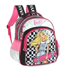 Mochila Escolar de Costas Barbie A Mochila de Costas da Barbie Luxcel é perfeita para transportar material escolar ou para uso diário. Com um design moderno e funcional, essa mochila possui amplo espaço interno, permitindo que você carregue tudo o que precisa de forma organizada e prática. Essa mochila possui um compartimento principal grande, com espaço de sobra para seus livros, cadernos e demais itens, um bolso frontal e além disso, conta com dois bolsos laterais para garrafa, ou outros objetos pequenos. Os puxadores do zíper são personalizados, adicionando um toque especial ao produto, além disso, a mochila possui uma alça de mão e alça de costas almofadadas. Fabricada em poliéster e pvc, essa mochila é resistente e durável. Características da Mochila Escolar: - 1 Bolso Principal com bastante espaço - 1 Bolso Frontal - 2 Bolsos laterais para squeeze - Estampa em alto relevo - Alças de costas acolchoadas e ajustáveis - Alça de mão reforçada na parte superior - Puxadores personalizados - Taggy identificação - Chaveiro Barbie personalizado - Material: 70% Poliéster e 30% PVC Dimensões Aproximadas: - Altura: 40 cm - Largura: 29 cm - Profundidade: 14 cm