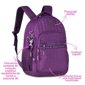 Características Mochila: - Alça de mão - Alça de costas - Alça carona - Bolso antifurto - Bolsos Laterais - Confeccionados em material soft com Matelassê localizado com corações - Chaveiros pompom de coração, cadarço, medalhinha de metal e mascote 3D - Logo RB em metal colorido - Zíper tratorado com puxadores com cadarço - Compartimentos para laptop + tablet- Forro rossa listrado