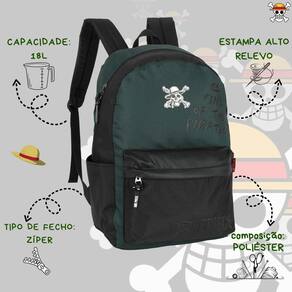 Mochila Costas One Piece Juvenil 18`` Meninos Escolar Verde