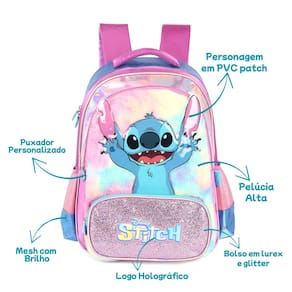 Mochila Costas Stitch Disney Escolar Meninas Holográfico - Luxcel