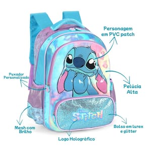 Mochila Costas Stitch Disney Escolar Meninas Holográfico - Luxcel