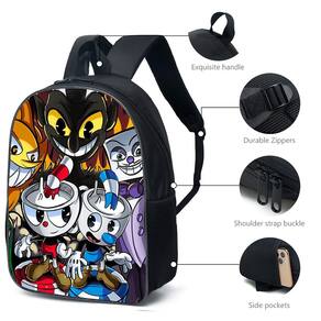 Mochila Cupsheads, mochila escolar infantil, impressão 3D, 30x15x40cm