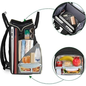 Características: ? Embale seus suprimentos de viagem e negócios em nossa lancheira de viagem para laptop, de volta à faculdade e faculdade com este item essencial de diálise. ? Funciona muito bem como presente de Dia das Mães, presentes de Dia dos Namorados para ela, presente de Dia dos Namorados. Presentes perfeitos para mulheres e homens! Presentes práticos e presentes para quem vai para a faculdade, viagens e trabalho, um item essencial para acessórios de viagem e acessórios para laptop. ? 100% nova e feita de tecido de poliéster de alta densidade e repelente de água, não molha facilmente e garante uso duradouro. Grande compartimento e bolso: Compartimento separado para laptop: serve para laptops com menos de 15,6 polegadas (laptop acima de 15,6 polegadas não é recomendado) Compartimento principal: roupas finas, fone de ouvido, revista, câmera, CDs, etc. Compartimento frontal para almoço: para alimentos quentes e bebidas frias Bolsos laterais: bolsos de malha elástica em ambos os lados, adequado para garrafa de água, guarda-chuva compacto pequeno e outros itens Atenção amigável: A MATEIN é especializada em fornecer produtos de alta qualidade e os mais acessíveis e insiste em um propósito de atendimento rápido e rápido ao cliente - Refrigerador isolado e à prova de vazamento: Tamanho: 38 x 26,7 x 18 cm (mochila) / 27,2 x 14,5 x 17,8 cm (compartimento térmico). A mochila para laptop Matein College de 15,6 polegadas mantém os alimentos quentes ou frios por cerca de 2 a 4 horas. A camada de isolamento de alta qualidade do compartimento da lancheira mantém os alimentos frescos e quentes neste suporte universitário, o que facilita a limpeza e o armazenamento de alimentos. A mochila de viagem para laptop com compartimento térmico é adequada para faculdade, praia, acampamento, escritório, piquenique, viagem, ao ar livre e interno - Porta USB conveniente: o carregamento USB desta mochila para laptop universitário facilita o carregamento do seu telefone enquanto você caminha do lado de fora, conveniente e prático. NOTA: Não inclui carregador portátil. Ambos os bolsos laterais desta lancheira universitária para guardar guarda-chuvas e garrafas de água, o tecido impermeável da lancheira masculina protege os materiais de trabalho desta bolsa de laptop de se molhar. Mochila de almoço, melhor presente como mochila universitária para amigos - Capacidade espaçosa e bolsos organizados: o compartimento principal e espaçoso desta mochila de trabalho para laptop é espaçoso para acessórios eletrônicos tecnológicos, necessidades diárias, revistas, torna seus itens organizados e mais fáceis de encontrar. Zíperes dourados de alta qualidade desta mochila universitária garantem o uso suave, robustez e prolongam o uso de lancheiras. A lancheira para laptop oferece espaço independente para seu laptop, celular, lancheira, roupas, garrafa de água, guarda-chuva, chaves, carteira - Design de bolsa e compartimento para laptop: mochila de viagem de praia com compartimento separado para laptop e iPad de 15,6 polegadas. O design de zíper duplo com abertura total desta mochila de almoço de trabalho é conveniente para armazenar itens, que dentro são transparentes à primeira vista, bolso oculto ajuda a proteger a carteira e o telefone enquanto você caminha ao ar livre, melhores presentes para mulheres, homens, esposa, marido, mulheres no Dia dos Namorados - Material confortável e resistente: mochila de viagem para laptop com compartimento para lancheira, design de alça de ombro ajustável com tecidos de alta qualidade e resistentes à respiração, oferecendo o máximo de conforto e suporte. Mochila de trabalho para laptop à prova de vazamento, adequada para faculdade, homens, mulheres, enfermeiros, negócios, adultos. Para seus amigos, como presentes de amigos da faculdade, é essencial ter alguns materiais de escritório, telefones, chaves, bolsa, óculos e outros pequenos itens diários