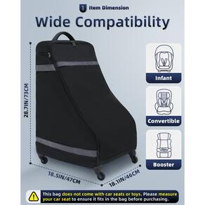 Esta bolsa 3 em 1 para assento de carro tem 46 cm (C) x 47 cm (L) x 73 cm (A) e é espaçosa para a maioria dos assentos de carro infantis/conversíveis/elevatórios. Funciona bem como uma bolsa de enrolar ou mochila e pode ser amarrada à bagagem. Feito de poliéster 1680D, que resiste ao manuseio áspero e é totalmente acolchoado para maior proteção do assento do carro. Também tem bolsos extras e uma janela de identificação para conveniência. - Flexível em uso: esta bolsa mede 46 cm (C) x 47 cm (L) x 73 cm (A) e pesa 3 kg, espaçosa para a maioria dos assentos de carro infantis/conversíveis/elevatórios; funciona bem como bolsa de rodinhas e mochila - Feita para durar: Feita de poliéster 1680D resistente, é resistente à água e à abrasão para suportar manuseio áspero; as rodas giratórias de 360° rolam suavemente em qualquer direção - Viaje com facilidade: com a alça extra e a alça de cintura, a bolsa pode ser amarrada firmemente à bagagem, permitindo que você carregue as duas com apenas uma mão, reduzindo o incômodo e economizando energia - Confortável de transportar: a parte traseira e as alças de ombro são bem acolchoadas e forradas de malha para conforto e respirabilidade; as alças ajustáveis no peito e na cintura distribuem o peso uniformemente para reduzir a tensão - Sem detalhes espelhados: a bolsa é totalmente acolchoada com espuma EPE e tem tiras de fixação para maior proteção do assento do carro; bolsos extras e uma janela de identificação oferecem fácil acesso e identificação rápida