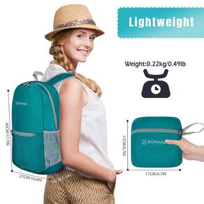 ZOMAKE Mochila de caminhada ultraleve 20L – Mochilas pequenas embaláveis resistentes à água para mulheres e homens - 200 g de mochila portátil ultraleve embalável: o tamanho da mochila de viagem embalável é de 45 x 14 x 27 cm, e o tamanho dobrável é 17 x 17 x 5 cm. A mochila dobrável leve é uma bolsa de bagagem ideal para um avião. Quando não for usada, dobre-a em um bolso compacto (tamanho sanduíches). Pode ser armazenado em em qualquer lugar em bolsos, bagagem, bolsas, etc - Mochila dobrável ultraleve de 20l: nossa mochila de caminhada embalável com capacidade resistente à água é de 20 L, a distribuição do bolso é razoável e os itens são armazenados de maneira ordenada. A bolsa principal é armazenada em roupas e diretrizes turísticas em divisórias internas. Uma bolsa frontal armazena pequenos equipamentos, como telefones celulares, fonte de alimentação móvel e duas bolsas laterais armazenam guarda-chuvas, garrafas de água ou óculos de sol. Nossa pequena mochila dobrável atende às necessidades de carregar itens leves - Mochilas embaláveis ultraleves de qualidade: nossa mochila dobrável ultraleve é de material de nylon resistente à água e resistência a rasgos, e o desempenho resistente à água é bom (observação: {corporation} completamente à prova d'água). Usamos novos processos de camada dupla resistente ao desgaste para fortalecer a sutura da pequena mochila embalável. Um zíper feito de metal SBS bidirecional e materiais de resina de alta qualidade para evitar que o zíper fique preso. O zíper suave pode lhe dar uma boa sensação de experiência - Design elaborado: nossa mochila dobrável ultraleve adota o design traseiro mais recente para reduzir efetivamente a pressão dos ombros; de acordo com o design ergonômico, pode atender diferentes pessoas e idosos. A tira antirluz é projetada no zíper da bolsa frontal e nas duas bolsas laterais, que desempenham um papel protetor durante a caminhada noturna - Obtenha a premiada mochila dobrável ultraleve Zomake: com o desempenho leve e a alta qualidade da nossa mochila ZOMAKE ultraleve, fornecemos serviços de alta qualidade para 500.000 pessoas no mundo todo e recebemos elogios de muitas pessoas. Acredito que nossa mochila leve dobrável será a parceira perfeita em sua vida. Você pode acompanhá-lo a pé, férias, compras, ciclismo e exercícios!