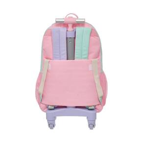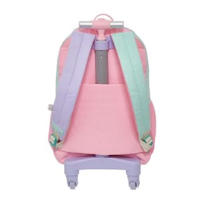 Coleção confeccionada em poliéster estampado em transfer, logo em silkscreen emborrachado. Puxador de zíper em corda com ponteira emborrachada em formato de U. Costas de tela de espuma personalizada com pespontos e etiqueta bordada na alça de ombro, além de contar com etiquetas personalizadas. Possui alças de costas e rodinhas 360 graus.