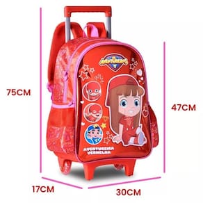 Que tal embarcar em uma viagem recheada de cores e muita animação com Os Aventureiros? MOCHILA COM RODINHAS: - Haste ajustável - Rodinhas com luzes - Puxadores com zíper - Detalhes holográficos com glitter - 01 Bolso frontal com amplo espaço interno - 01 Bolso principal com amplo espaço interno - 02 bolsos laterais (serve para colocar garrafinha) - Alça de mão e alças para costas acolchoadas e ajustáveis - Haste ajustável até 30cm - Diâmetro das rodas: 2cm - Tamanho aproximado: 47cm/75cm com haste levantada (alt) x 30cm (comp) x 15cm (larg) - Composição: PVC, poliéster, metal e rodinhas em silicone. Observações:* As cores dos produtos podem variar. * Imagens ilustrativas, as cores podem alterar conforme o seu monitor