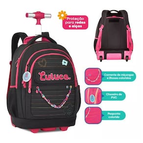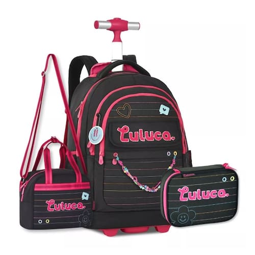 Mochila de Carrinho Luluca Com Lancheira Térmica E Estojo Box Preto