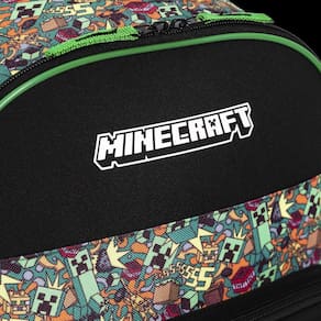 Ligue o modo criativo e explore a rotina de estudos com a mochila de rodinhas Funtage do Minecraft O tecido é coberto por um mosaico com os elementos do jogo que é o maior sucesso entre os jovens e crianças. Espaçosa, conta com um compartimento, bolsos laterais em elástico para garrafinha, e um bolso frontal com a face de Creeper em 3D Enquanto isso, o carrinho de rodinhas permite que o seu pequeno aventureiro desbrave o dia a dia na escola da melhor forma Marca: Não Informado