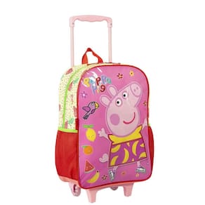 A porquinha mais famosa da TV está com uma linha completa para a escola A Mochilete Grande Peppa M Fruits - Colorido leva uma estampa exclusiva das frutas favoritas da Peppa Pig. O item possui um amplo compartimento principal para organização dos pertences, boldos laterais em elásticos para squeeze, tag de identificação do pertence e carrinho de rodinhas embutido para facilitar o transporte Alça:De Mão Cor:Colorido Ocasião:Escolar Tamanho:Grande Material:Poliéster Altura:50 cm Largura:31 cm Profundidade:16 cm Peso:0,8 kg Capacidade Total:19 L Marca: Não Informado