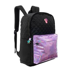 Mochila de Costa Minnie Holográfica Preta e Lilás Xeryus