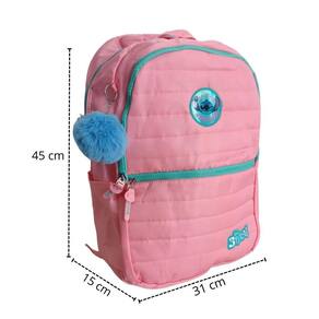 Características: - dimensões: 45 cm de altura x 31 cm de largura x 15 cm de profundidade, com capacidade aproximada de 21 litros. - material: feita de 100% poliéster, com forro também em poliéster, garantindo durabilidade e resistência. - estrutura: possui 03 compartimentos para melhor organização e uma alça de mão reforçada para transporte prático. - estilo único: logo emborrachado e design exclusivo do stitch que encanta fãs de todas as idades.