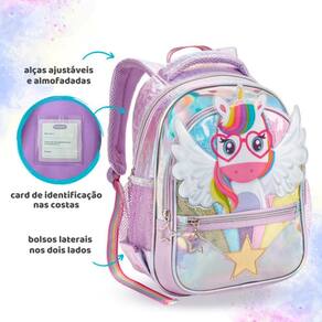 Mochila De Costas Escolar Infantil Estampado Unicórnio Wings Cor: Roxo Encante-se com a Mochila Escolar Infantil Unicórnio Wings, perfeita para adicionar magia ao dia a dia das crianças. Com design exclusivo e estampa vibrante de unicórnios, essa mochila combina estilo e funcionalidade. Ideal para a rotina escolar, oferece amplo espaço interno, alças ajustáveis e acabamento resistente. Um toque de fantasia para acompanhar os pequenos em todas as aventuras