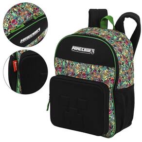 Mochila De Costas Escolar Infantil Minecraft Funtage Sestini Cor: Preto Ative o modo criativo e explore a rotina de estudos com a Mochila de Rodinhas Funtage do Minecraft Estampada com um vibrante mosaico dos elementos do jogo, essa mochila traz a magia do Minecraft para o dia a dia escolar. Ampla e funcional, ela possui um compartimento principal, bolsos laterais em elástico para garrafinhas e um bolso frontal com a icônica face do Creeper em 3D. As alças de costas acolchoadas garantem conforto e praticidade, tornando o transporte ainda mais fácil para os pequenos exploradores. Perfeita para quem busca estilo, diversão e conforto na escola