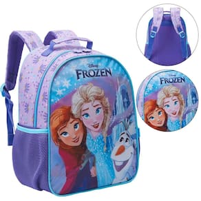 Características; Ocasião: Escolar, dia a dia, passeio Alça de mão acolchoada Alça de costas reforçada acolchoada 1 Compartimento Nos modelos Princesas, Ariel 1, Cinderela, Frozen, Fronzen Desenho e Minnie Mouse 2 Compartimentos Nos modelos Ariel 2, Princesas 2 e Branca de Neve Bolsos laterais para garrafa Zíper personalizado de acordo com cada personagem Produto oficial licenciado pela Disney Diversos personagens disponíveis