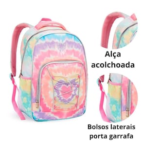 Mochila: -Medidas: 46cm x 34cm x 14,5cm -Puxadores Personalizados -Estampa Exclusiva -Material Poliéster -Cordão Brilhante -Bolsos Laterais Porta Garrafa