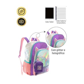 A mochila de costas gatinha é perfeita para as pequenas fashionistas que amam tudo que é brilhante e divertido. Com detalhes holográficos e glitter, ela é a companheira ideal para levar todos os materiais escolares com muito estilo e conforto.