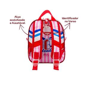 Características: - Lancheira termoformada em 3D - Impermeável e de fácil limpeza - Leve e de alta resistência - Verso Em Tecido - Elástico interno - Detalhe em Pompom - Alça De Segurança