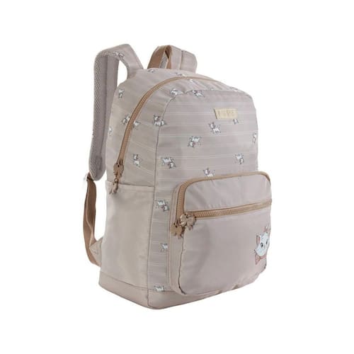 Mochila De Costas Juvenil Escolar Bege Gatinha Marie Xeryus