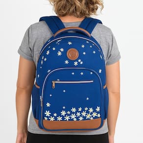 Uma mochila única e exclusiva, com um design encantador: essa é a Mochila Floral By Uatt da Clio. - Confeccionada em poliéster com estampa de jeans com detalhe de PVC, silk de florzinhas, zíper rose gold e etiqueta de PVC prensada; - Uma mochila com espaço bastante amplo: com 44cm de altura, 33cm de largura e 14cm de profundidade, ela dispõe de um compartimento principal super espaçoso, com compartimento para notebook, dois bolsos frontais, para guardar objetos e ter um acesso rápido a eles, e ainda dois bolsos laterais, ideal para garrafa d'água ou objetos menores; - Um design absolutamente apaixonante, com uma combinação de cores e elementos que ficam em completa sintonia, deixando essa mochila ainda mais única e especial; - Resistente e durável: uma mochila produzida com materiais selecionados e de alta qualidade, podendo ser Utilizado por muito tempo nas suas viagens, passeios e estudos. Dimensões: 44cm altura x 33cm largura x 14cm profundidade
