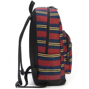 Mochila de costas com bolsos laterias com elástico, alças de costas espumadas e reguláveis, silk frontal, bolso frontal com zíper, alça de mão e etiquetas personalizadas.