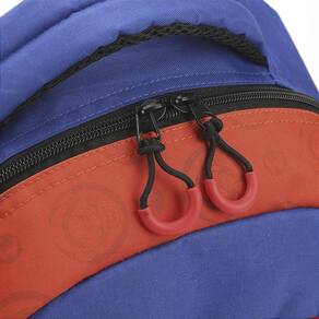 Mochila com bolsos laterias em tela com elástico, alças de costas espumadas e reguláveis, silk frontal, bolso frontal com zíper, alça de mão e etiquetas personalizadas.