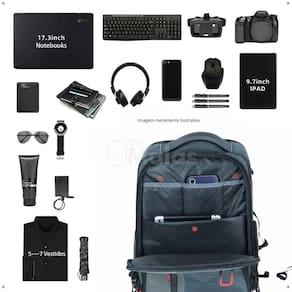 A mochila traz também porta USB integrado, garantindo praticidade para carregar seus dispositivos mesmo em movimento. O sistema Smart Sleeve permite acoplar facilmente na mala de viagem, oferecendo mais conforto em deslocamentos.