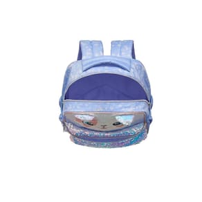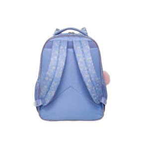 Mochila de costas, que conta com estampa frontal, bolso frontal, telinha lateral, compartimento grande com fechamento em zíper e etiquetas personalizadas.