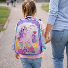 1 Bolso Principal, 1 Frontal e 2 Laterais para garrafinhas; Mochila de Costas com Alça Resistente Estampa Personalizada do Little Pônei;