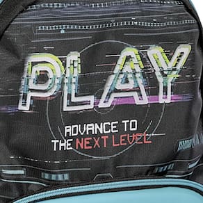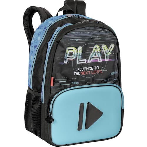 Mochila de costas Sestini Start, conta com alça carona, bolsos laterais em tela com elástico, tag identificador, bolso frontal com fechamento em zíper e etiquetas personalizadas.