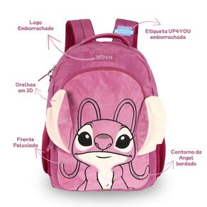 Mochila de Costas Stitch Disney Peluciada 3D Meninas - Cor: Rosa