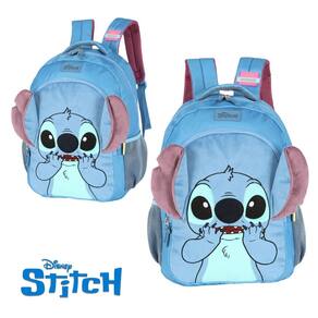 Características: - Alça de mão - Alça de Costas ajustável e acolchoada - Bolso Lateral Telado - Logo Emborrachado - Frente Peluciado - Orelhas em 3D - Etiqueta UP4YOU Emborrachada - Zíper com Puxadores Personalizados - Contorno do Stitch bordado