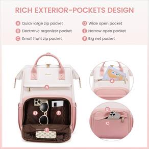 LOVEVOOK Mochila para laptop, Bege branco - rosa - 💯?High Quality & Large Capacity?: LOVEVOOK leather laptop backpack for women is made of high quality waterproof PU leather, the no-slip gold zippers are a nice touch, the stitches are tight and very durable. CLASSY, FUNCTIONAL, ROOMY. Dimensions: 13”L 18”H 8.3”D, Weight: 3.15 lbs. Total of 2 compartments and 19 pockets for your computer,binders,notebooks,water bottles,work necessities,college supplies and travel essentials. - 💻?Padded Computer Backpack & Laptop Bag?: This leather backpack for women is padded on all sides and bottom,the padding for the laptop is thick. come with a elastic strap, which can provide good physical protection to your laptop and iPad. Great idea for someone with multiple electronic devices. - 🎒?Wide Open Teacher Bag & College Backpack?: The brown interior lining makes it seem so luxurious. Reinforced edges and steel frame of the main compartment keep the perfect shape of the bag and durable of usage. Wide Open Design, rectangular opening makes it incredibly convenient and easy access to the items at the bottom. - 💪?Professional Work Backpack & Travel Carry-on Bag?: Perfect work bag. There are so many compartments really great for work use. The padded straps are comfortable. The luggage strap allows the backpack fit on luggage/suitcase for easier carrying. Back hidden anti theft Edição de Bolso to store phone, ID, and cards Makes it easy to access and quickly store. Womens backpack for traveling on airplane, Fits great under airline seats. - ??Practical Gifts & Quality Warranty?: This LOVEVOOK leather laptop bag for women has been well made for work, business, travel, commuting, college, teacher, nurse, daily use. Practical gifts for all people you care about. We LOVEVOOK backpack provide a 12-hour customer service, 90-day no-reason return and 1-year warranty policy.