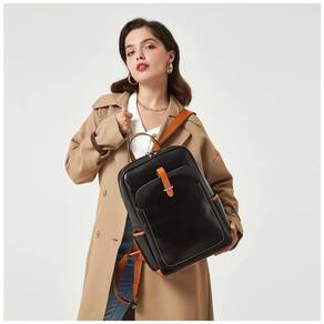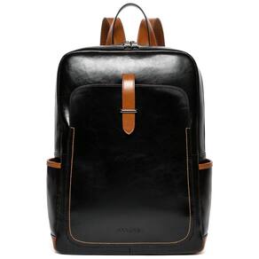 Mochila de Couro para Laptop Casual, BOSTANTEN, Preto